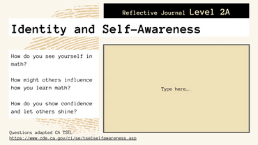 Understanding the distinctive challenges and goals of K–12 school districts, Math is SEL offers flexible Math is Me journals that are ready to download and use in your classroom, school, or district. Each journal is designed to sit alongside your existing math program, align with state standards, and reflect the 2023 California Math Framework and CA state TSEL Guidelines. More than a reflection tool, the Math is Me journal is a practice that supports students to build a healthy relationship with math, strengthen their performance, and feel part of a community that honors both emotional growth and mathematical learning.